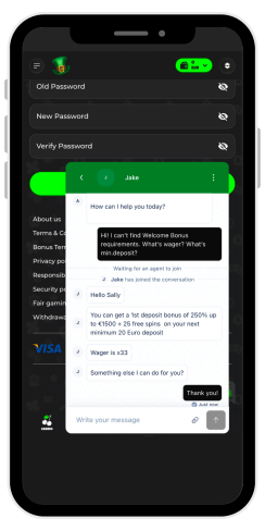 For eksempel, hvis du mottar 0 USD i cashback, må du plassere innsatser på totalt 0 USD (0 * 33) gjennom spillet ditt før du kan ta ut gevinstene dine.