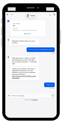 For å besøke Casino Infinity, må du være minst 18, som kreves ved lov i USA og av Casino Infinity begreper
