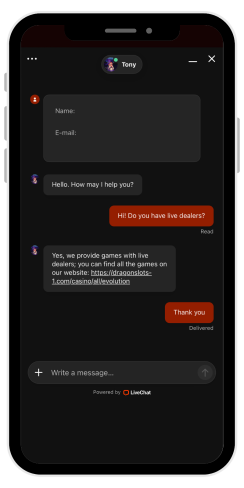 Live Casino-seksjonen vises ikke tydelig i katalogen og kan være vanskelig å finne — nye spillere kan tro at live-spill ikke er tilgjengelige.