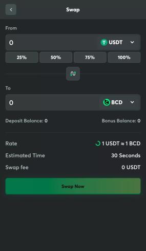 Hvis du bestemmer deg for å bytte kryptovaluta i løpet av spillet kan du alltid bytte dem. For å gjøre det, gå til kontoen din og velg "Bytt" -delen. Der velger du beløpet du vil bytte og valutaen du ønsker å motta.
