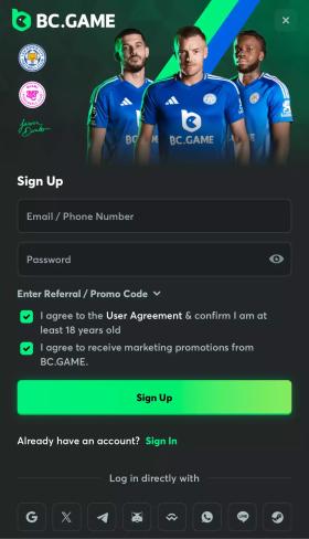Du kan registrere deg på to måter - enten med e-post / telefon eller ved å logge inn med Google, X (Twitter), Twitter, WhatsApp, Steam eller din kryptolommebok.