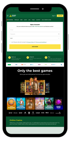 Etter å ha tatt et dypdykk i Mason Slots nettcasino, kan jeg si at det føles som et velbygd, modent nettsted som fokuserer på stabilitet, åpenhet og spillerkomfort i stedet for prangende gimmicker. Designet har et karakteristisk frimurertema, men siden er ren, rask og enkel å navigere, både på PC og mobil. Jeg la spesielt merke til hvor velorganisert lobbyen er - til tross for det enorme antallet tilbydere, føles den aldri overveldende. Mobilversjonen kjører også problemfritt og speiler nesten alle funksjonene på PC-en, noe som gjør det praktisk å spille på farten.