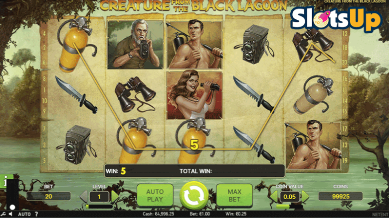 The Creature From the Black Lagoon fra NetEnt er plassert på 5 hjul, 3 rader og har 20 faste gevinstlinjer.