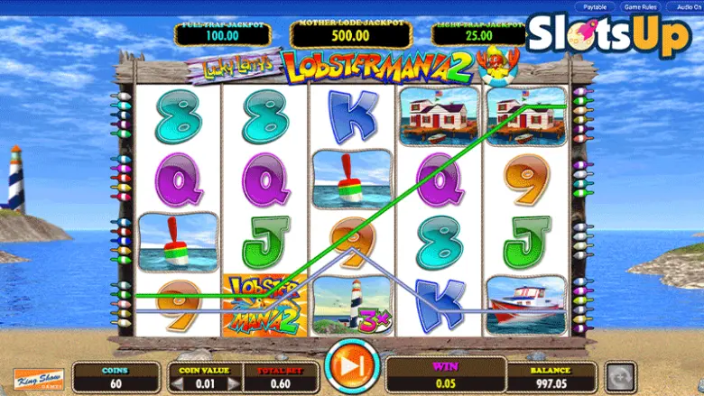 Badeeventyret utspiller seg på 5 hjul og 3 rader med 15 faste gevinstlinjer. Følg vår ekspertanmeldelse av Lucky Larry's Lobstermania-spilleautomaten for å oppdage detaljene i dette spillet. SlotsUp tilbyr også en Lucky Larry's Lobstermania-demo som du kan prøve. Er du klar til å besøke kystbyen og ha det gøy?
